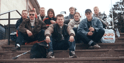 Joukkueemme Jokelassa alk. vas.Purtsi, Jamppa, Päivinen, Folke West, Kari, Ari, Paula, Pete, Jussi.
